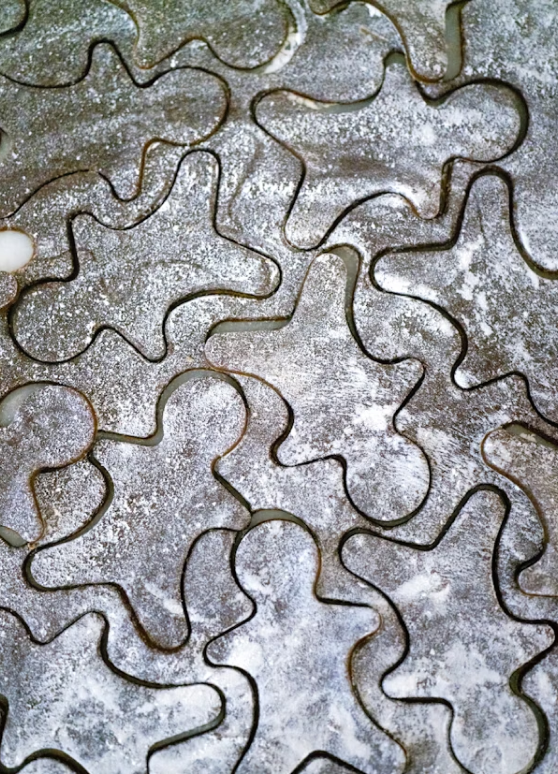 In a large bowl, by hand (or with an electric mixer), cream the butter until it is light and fluffy. Add the sugar and mix again until light and creamy. Blend in the eggs one at a time and then the molasses. Add the flour mixture in two additions either by hand or on low speed. The dough should be easy to handle, and not overly tacky. If needed, add more flour, one tablespoon at a time, until it isn't overly sticky. Divide the dough into two pieces, wrap each in plastic and chill for an hour or so.